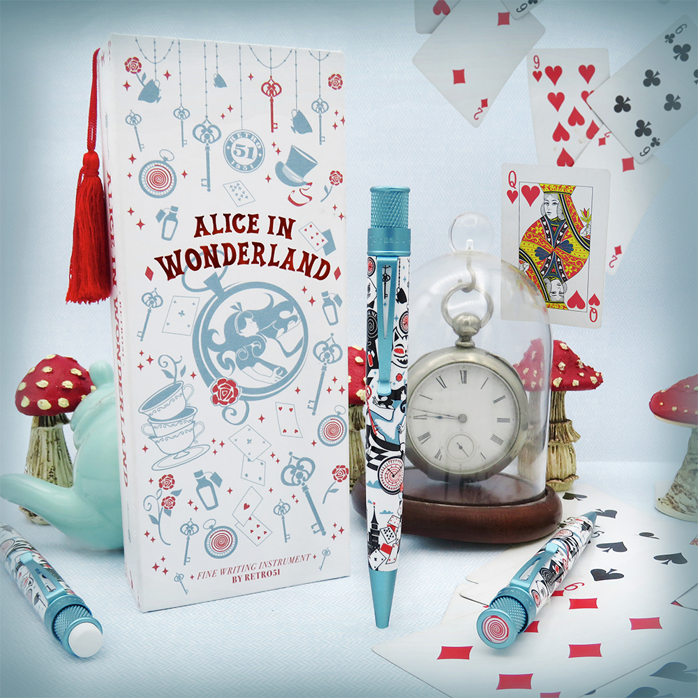 Retro51'in Edebiyat Serisi en yeni Rollerball'u ile tavşan deliğine düş! Karanlıkta parlayann büyüleyici Alice Harikalar Diyarında grafikleriyle süslenmiş her kalemle kendinizi Lewis Carroll'un zamansız öyküsünün büyüsüne kaptırın. İster not alıyor olun, ister kenar boşluklarına karalamalar yapın, ister sadece muhteşem resimlere hayran olun, bu Literary Tornado™ kesinlikle hayal gücünüzü harekete geçirecek ve günlük yazma deneyiminize harika bir dokunuş katacaktır.