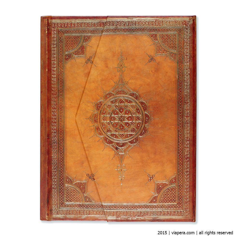 • Kapak görseli 14. yüzyıl Memluk dönemindeki Kuran'dan esinlenilmiştir. Geometrik desenler, ince yanardöner vurgular ile zengin tonlar içermektedir. Kapağında barındırdığı mıknatıs sayesinde kolay bir şekilde kapatılabilir.