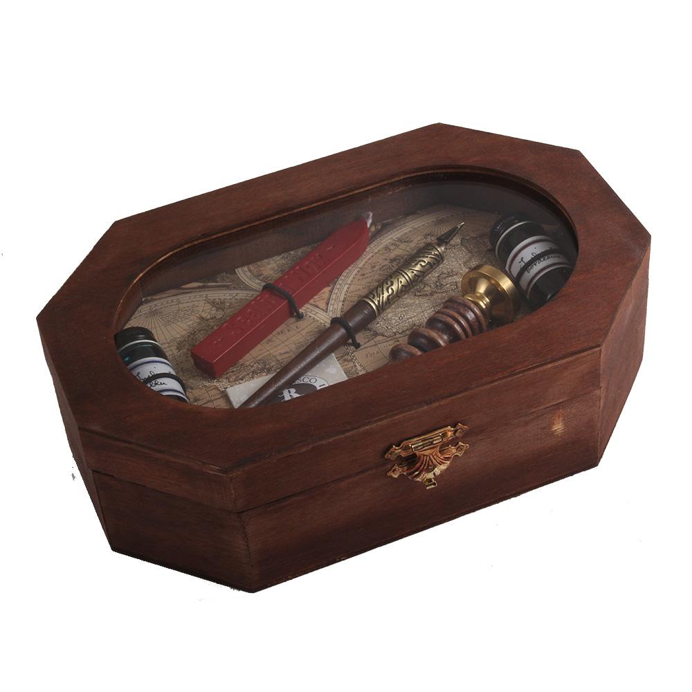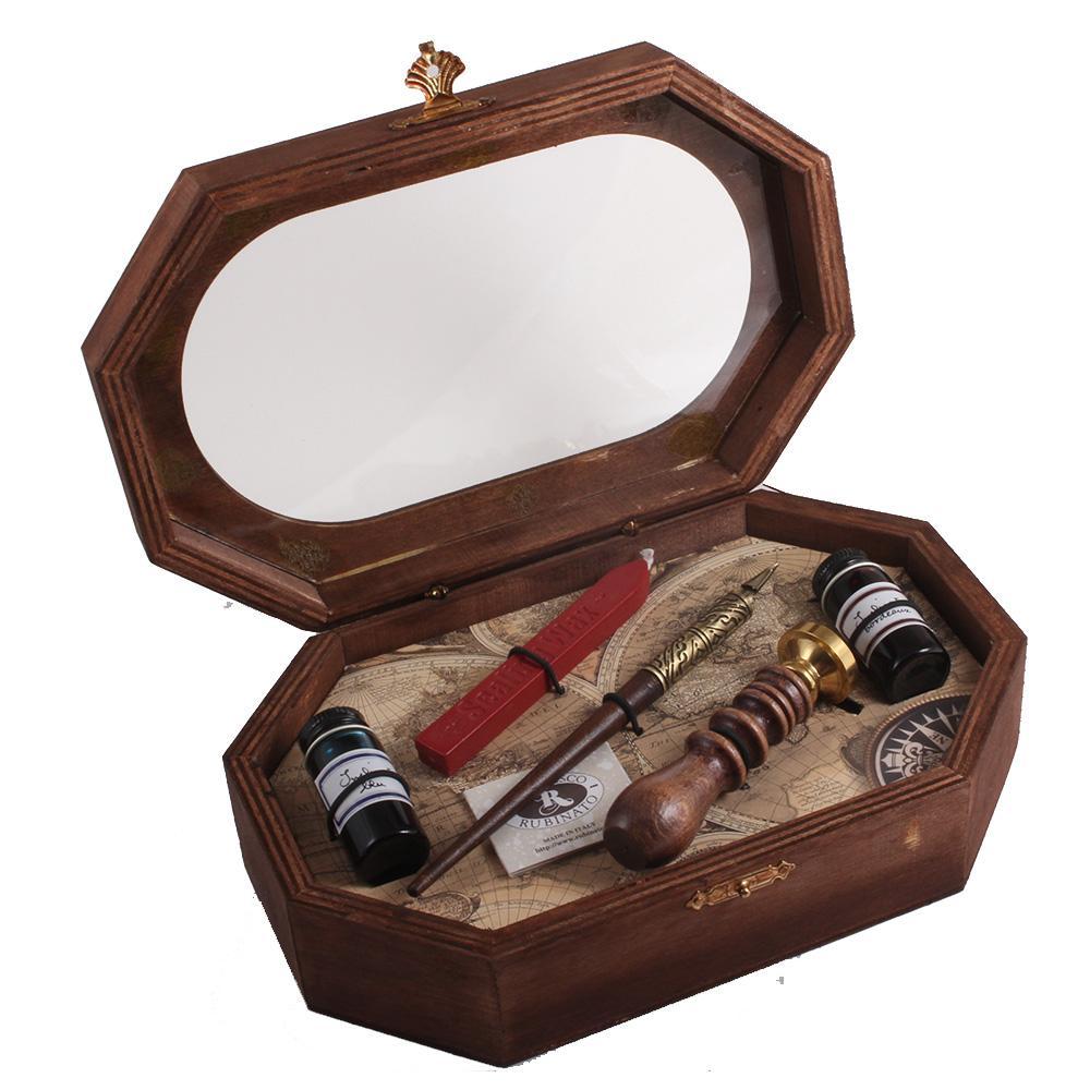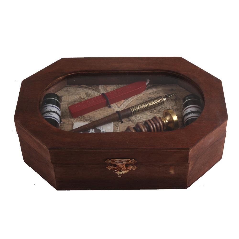 Özel sekizgen ahşap kutu içerisinde, el yapımı ahşap&metal divit kalem,pirinç mühür,mühür mumu ve 2 farklı divit mürekkebi içeren özel bir settir.