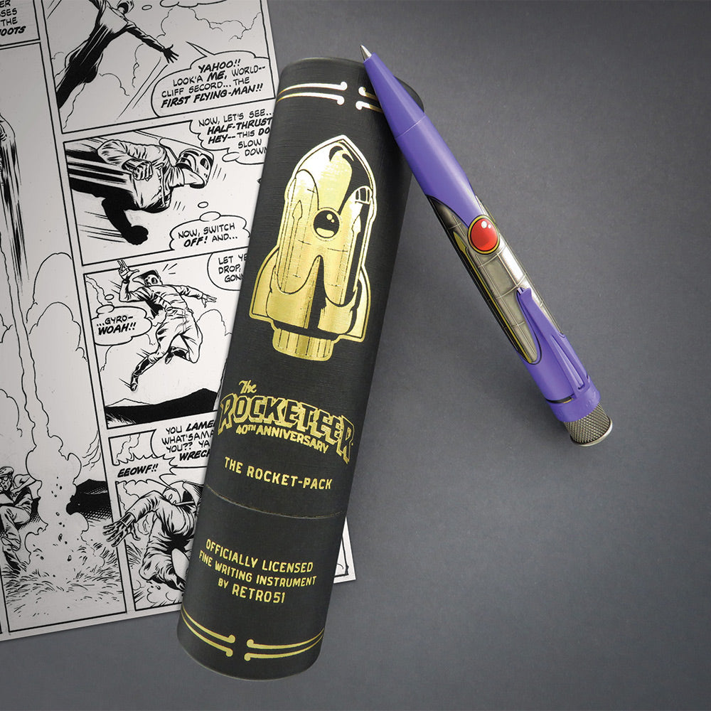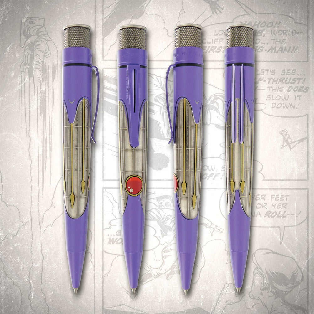 Rocketeers Limited The Rocket Pack Serisi : Rocketeer koleksiyonunuz, roket paketi olmadan tamamlanmış sayılmaz! Bu akıllı tasarım, orijinal roketi tüm mor ihtişamıyla tasvir etmek için Big Shot rollerball gövdesinin ekstra çevresini kullanır! Asitle oyulmuş ayrıntılar, taşlanmış kalay vurgular ve ateşli bir üst diskle tamamlayın - roketin bu etli, komik-doğru temsili koleksiyonunuzu alevlendirecek. 800 adetlik Sınırlı Üretim. Her bir kalem, üst halkada numaralandırılmıştır ve altın yaldızlı sanat damgalı özel bir siyah tüp içinde paketlenmiş olarak gelir!