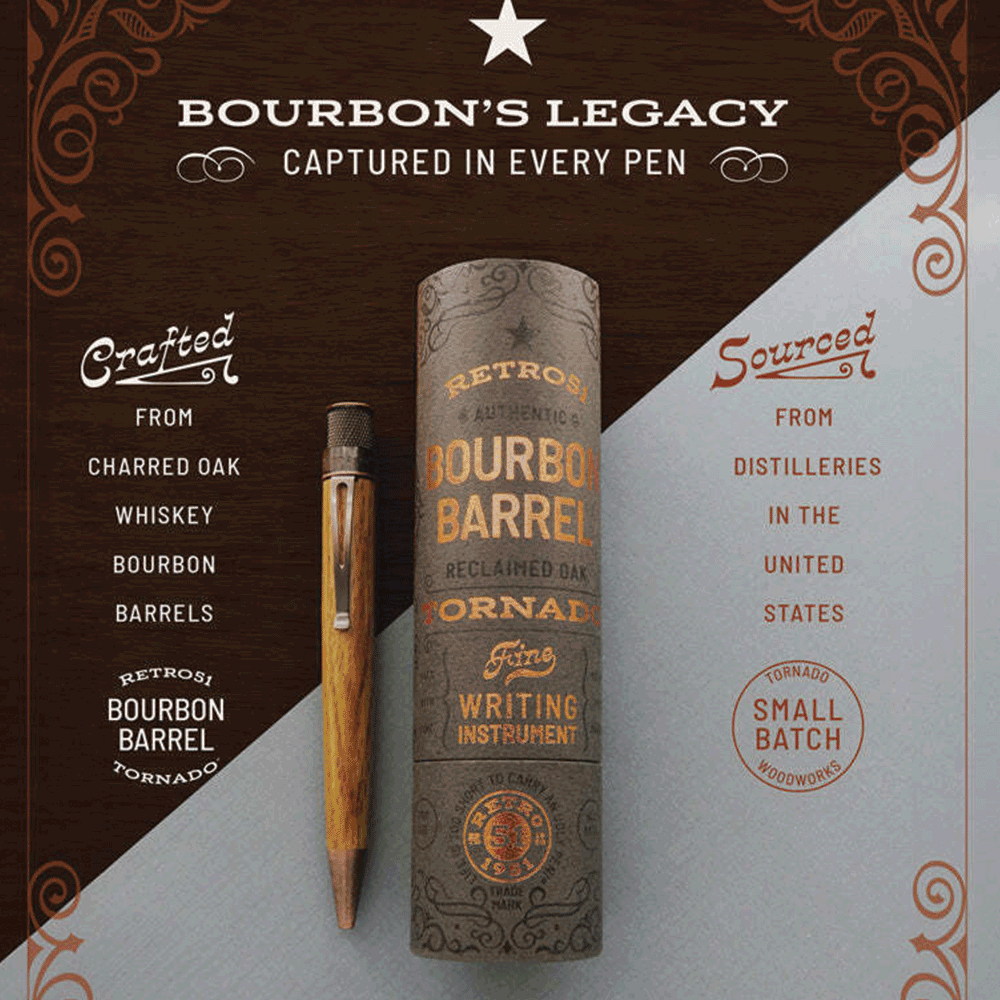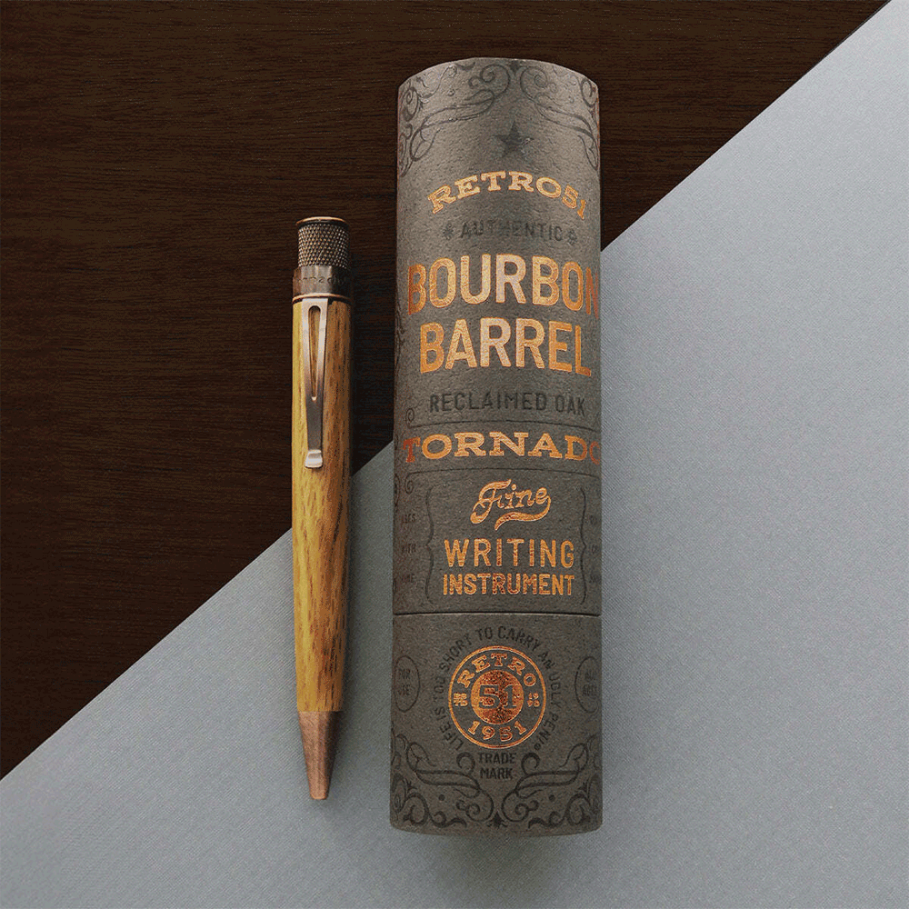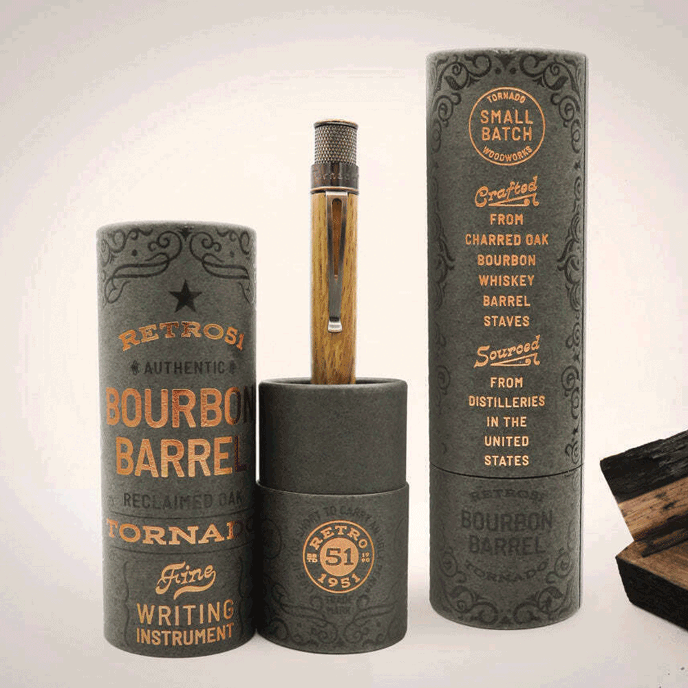 Malzeme Bourbon Viski Fıçı Ahşap Boyut Uzunluk: 12.5cm Çap: 12mm 31 gram Mekanizma Üstten çevirmeli Uç özelliği Rollerball 0.7mm Jel Menşei Amerika -