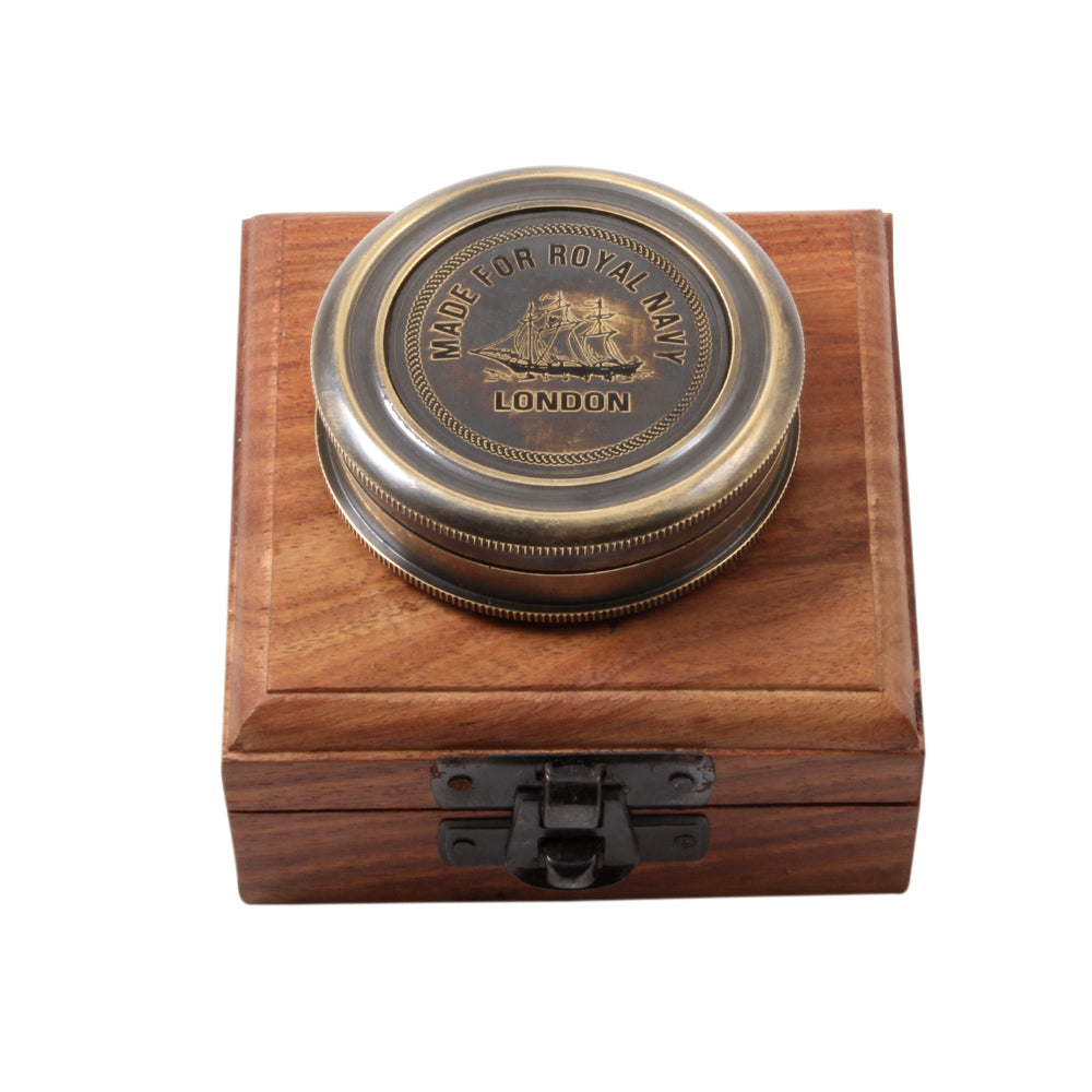 - Tamamen pirinç alaşımından üretilmiş cep pusulasıdır. Kapak tipi çevirmelidir. Şık ahşap kutusu ile birlikte hem kendiniz için hem de sevdiklerinize hediye olarak düşünebilirsiniz.