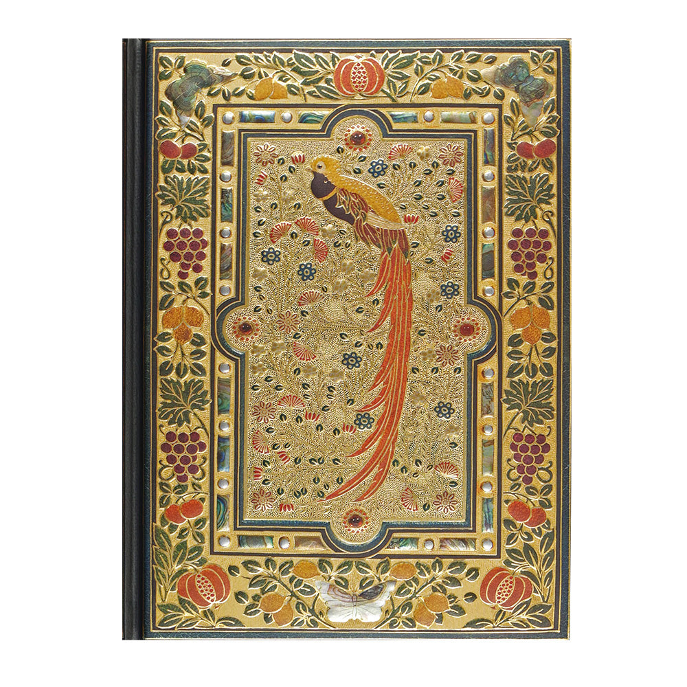 • Radiant Bird of Paradise Journal, Defter kapağı1920 dolaylarında Londralı ciltçiler Sangorski & Sutcliffe tarafından John Milton'ın Paradise Regained için yarattığı mücevherli bir cildi yeniden üretilmiş halidir.