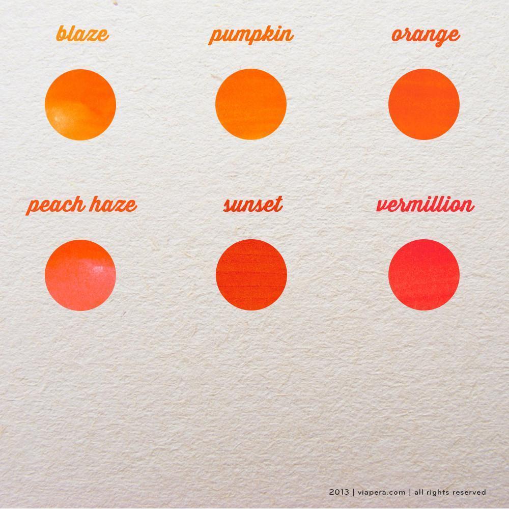 - Diamine dolmakalem mürekkeplerinin 98 farklı renk çeşidini daha rahat inceleyebilmeniz için tonlarına göre gruplara ayırdık. Turuncu renk tonları olan Blaze, Orange, Peach haze, Pumpkin, Sunset, Vermillion renklerini bu sayfada bulabilirsiniz.