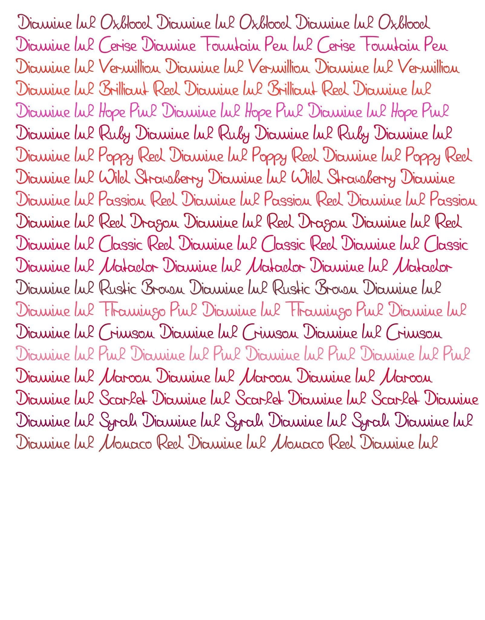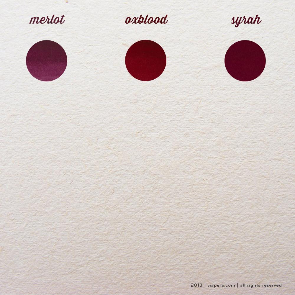 • Diamine dolmakalem mürekkeplerinin 98 farklı renk çeşidini daha rahat inceleyebilmeniz için tonlarına göre gruplara ayırdık. Şarap renkleri olan Merlot, Oxblood ve Syrah renklerini bu sayfada bulabilirsiniz.