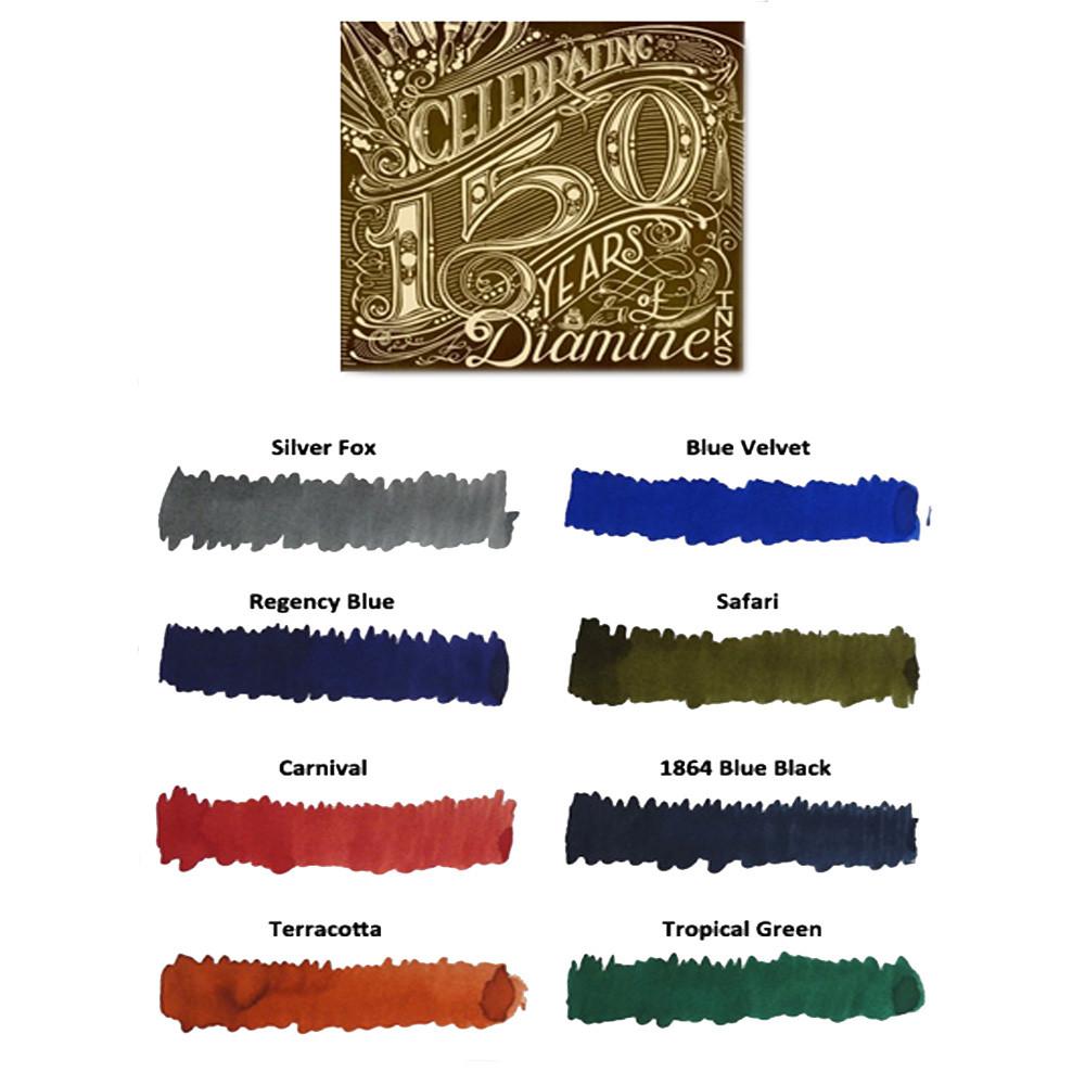 • Diamine Ink markasının 150.yılını kutlamak amaçlı çıkardığı özel koleksiyon serisidir. Bu koleksiyonda, mürekkep şişeleri, özgün bir formatta olup üçgen şeklindedir ve bütün koleksiyon tamamlandığında, sekiz renkten oluşan bir çember oluştuğunu göreceksiniz ve masaüstünde oluşan muhteşem görüntüye şahit olacaksınız.