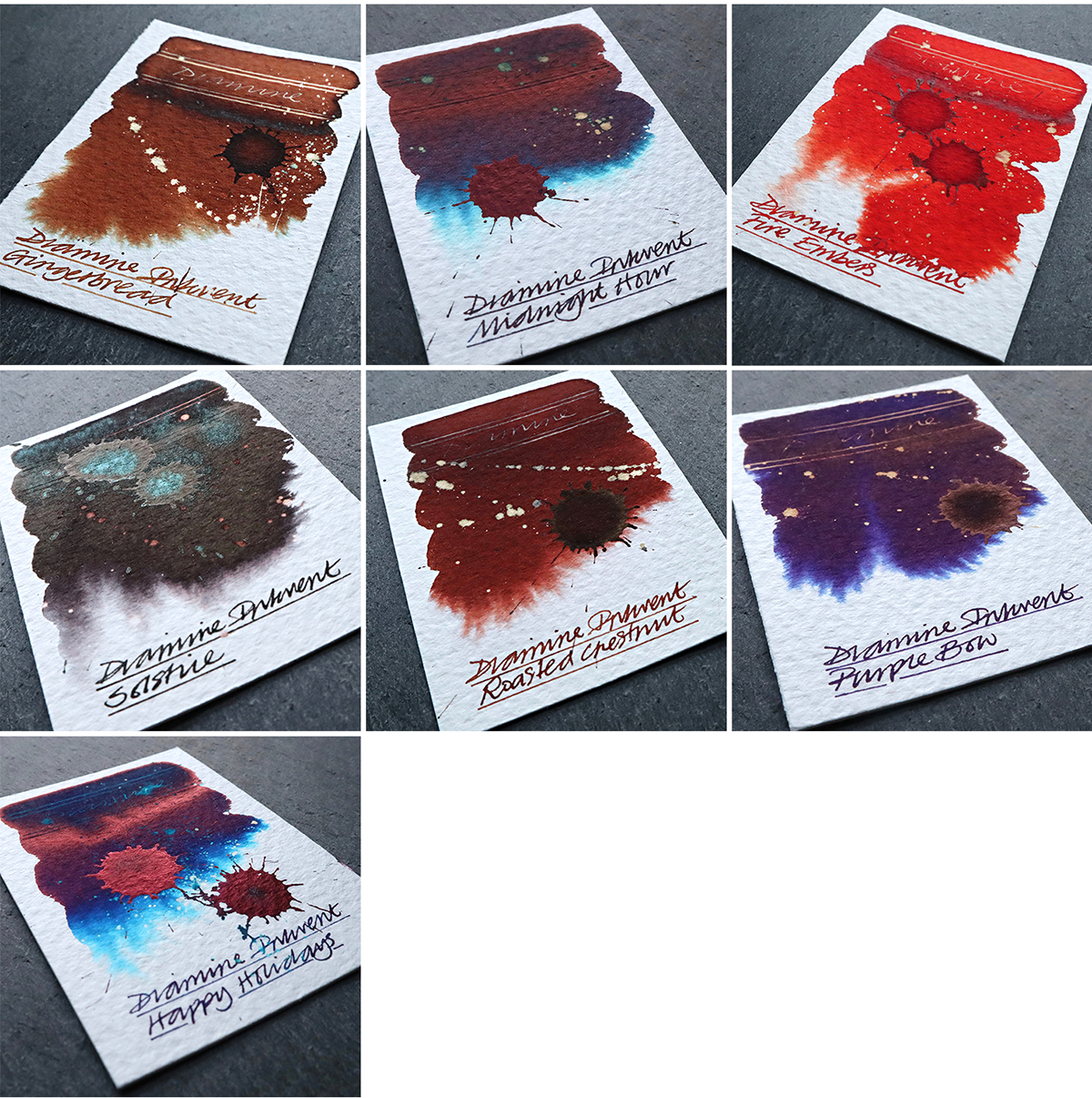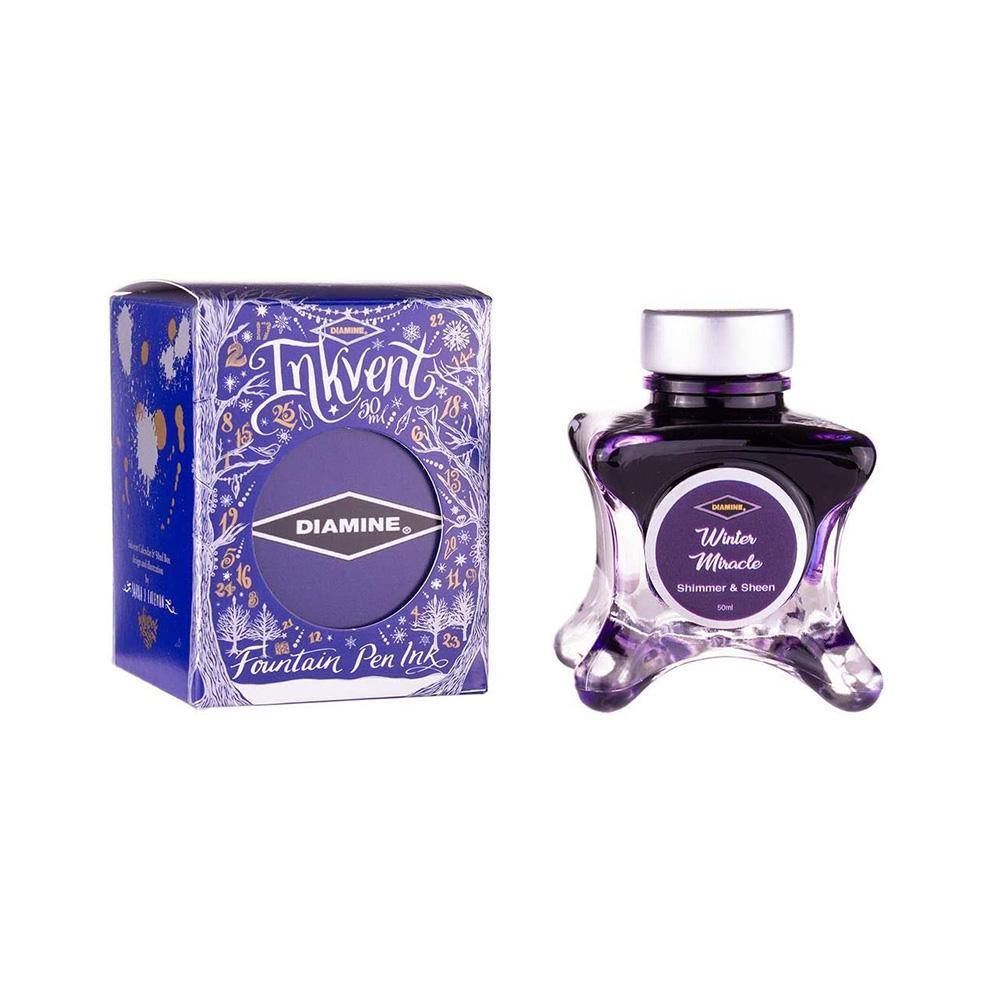 - Winter Miracle Sheen&Shimmer Serisi, hem kağıtta gölgeleme yaparken aynı zamanda gümüş/altın parıltı etkisi mevcuttur. Inkvent serisinin en özel mürekkep grubundan biridir.Diamine Ink markasının önce Inkvent calender olarak çıkarttığı serinin 2021'de 50 ml olarak çıkarttığı yeni seri. Özel şişe tasarımı ve içeriği ile ilgi çekmektedir.