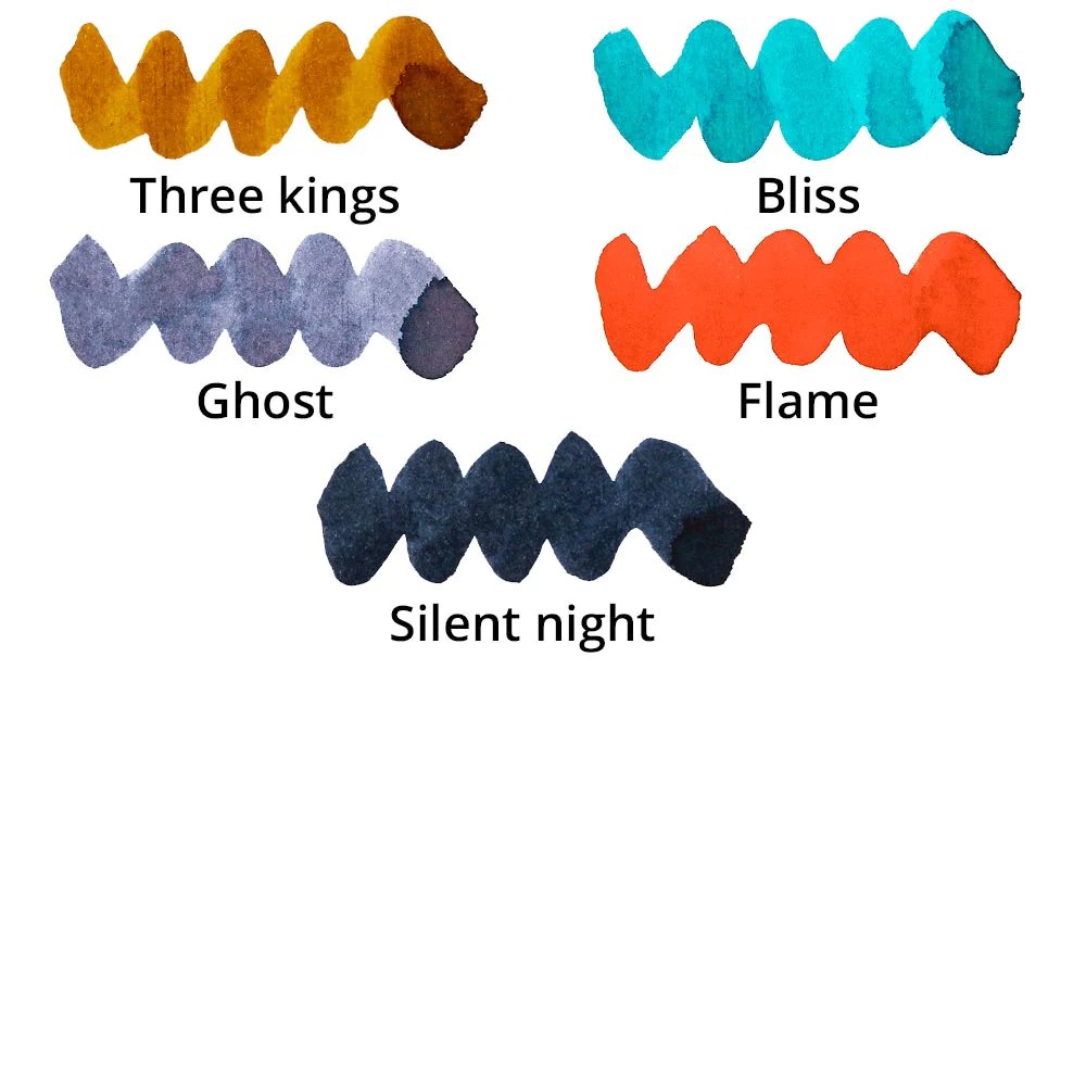 • Diamine Green Edition Mürekkep Standard Serisi:içerisinde herhangi bir gölgeleme veya gümüş/altın partikül eklenmemiş mürekkep serisidir.  Diamine Ink markasının önce Inkvent calender olarak çıkarttığı serinin 2022'de 50 ml olarak çıkarttığı yeni seri. Özel şişe tasarımı ve içeriği ile ilgi çekmektedir.