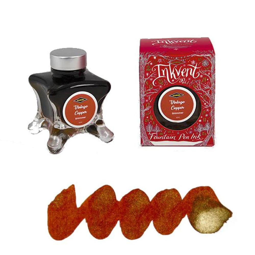 - Her sene yeni renklerle karşımıza çıkan Diamine'nin bu seneki Red Edition 2022 yeni renk grubu karşınızda.Inkvent shimmer serisi,aynı shimmering mürekkeplerde olduğu gibi kuruduğunda içindeki partiküller sayesinde altın veya gümüş renkte bir parlaklık vermektedir. Diamine Ink markasının önce Inkvent calender olarak çıkarttığı serinin 2021'de 50 ml olarak çıkarttığı yeni seri. Özel şişe tasarımı ve içeriği ile ilgi çekmektedir.