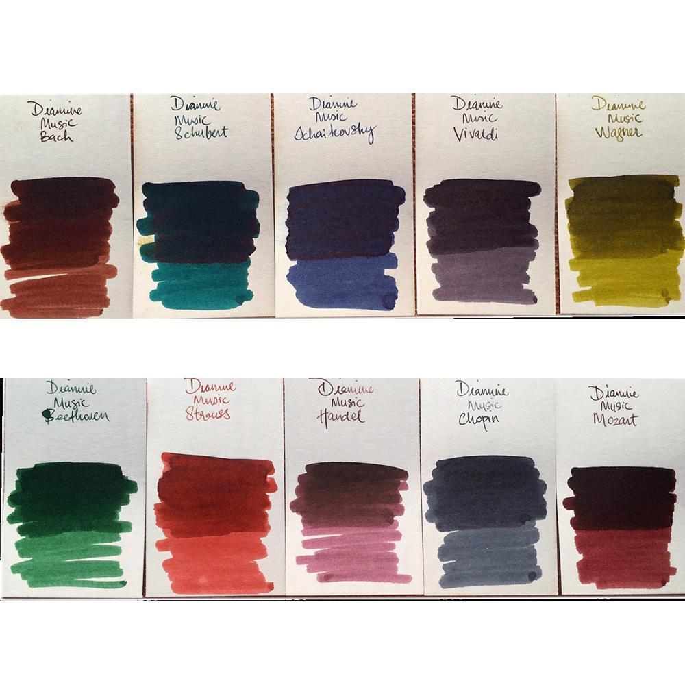 - Diamine Music Collection: Ünlü klasik müzik bestekarları için ürettiği özel mürekkep serisidir. Sadece 30 ml olarak üretilmektedir.