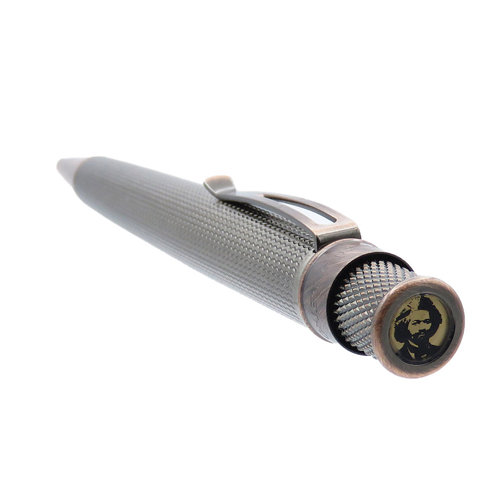 • Ünlü kölelik karşıtı Frederick Douglass'tan ilham alan bu Retro 51 çevirmeli roller kalem, antik bakır süslemeyle tamamlanan oyulmuş bir dokuya sahiptir.
