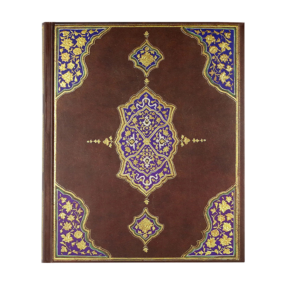 Deri ve altından yapılmış zarif bir on dokuzuncu yüzyıl İran ciltlemesini yeniden üretilmiş bir defter tasarımıdır.