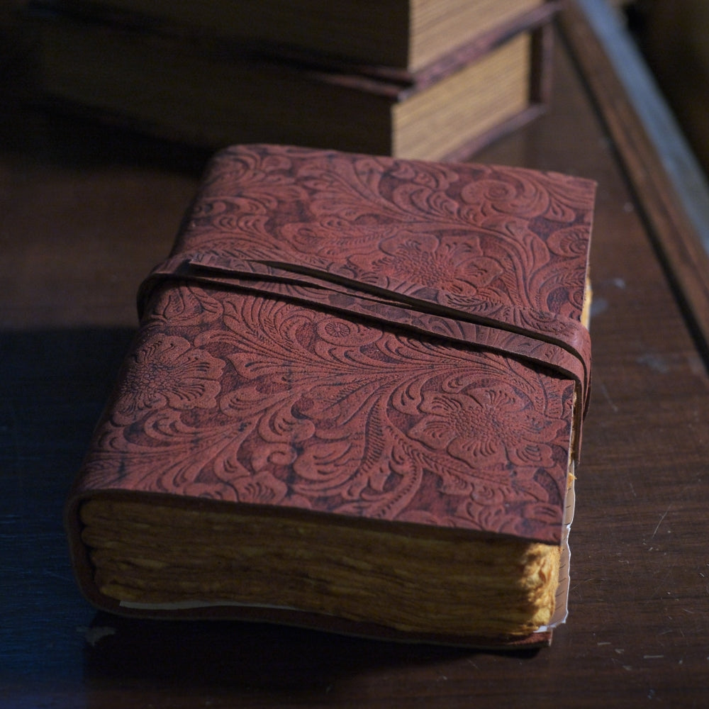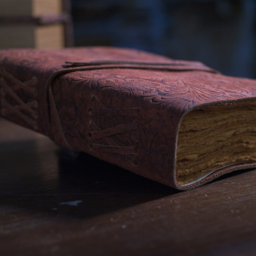 Floral Embossed Deri Defter Bordo