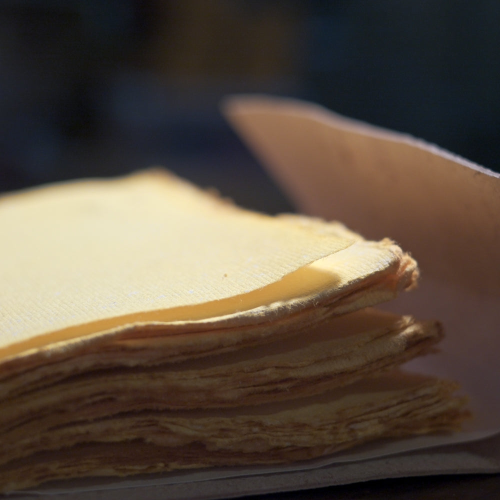 El yapımı deri defter serisi, %100 pamuklu el yapımı kağıt mevcuttur.Özellikle kurşun kalem ve eskiz kalem için idealdir. Dolmakalem ve roller kalem için tavsiye edilmez.