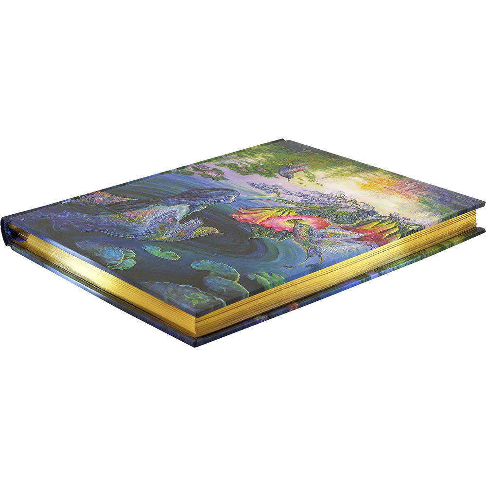 - Fantasy art sanatçısı Josephine Wall tarafından yazılan bu aydınlık defterin kapağı, parlak sinek kuşlarını ve mistik bir zambak göletini paylaşan kanatlı bir peri arkadaşı tasvir ediyor.