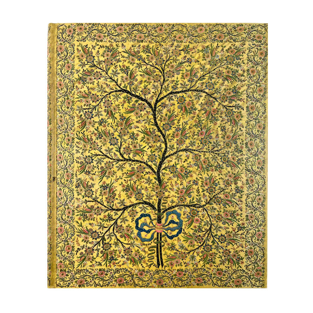 - Bu muhteşem altın defter, Osmanlı döneminden kalma bir Türk ipeğini taklit etmektedir. Orijinal tasarım önce mürekkeple kumaşa çizildi ve sonrasında çiçekli ağacına hayat vermek için ince ipek iplikle işlenmişti.