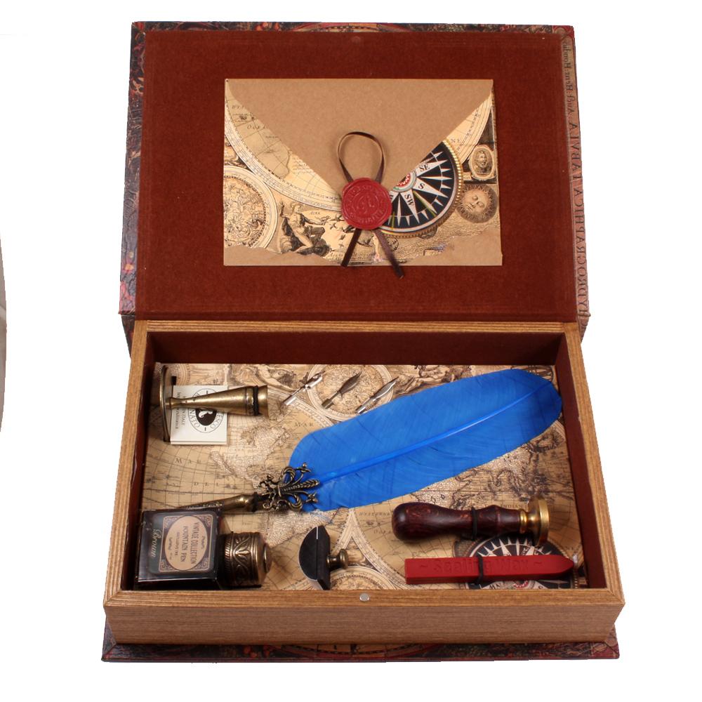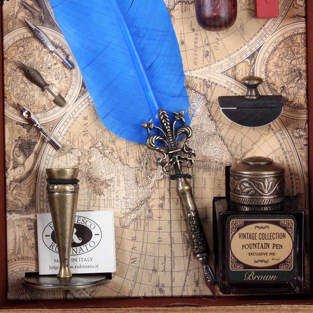 Ahşap gövde pirinç mühür,3 adet divit uç, mürekkep kurutucusu, tüylü divit kalem ve 40 ml mürekkep