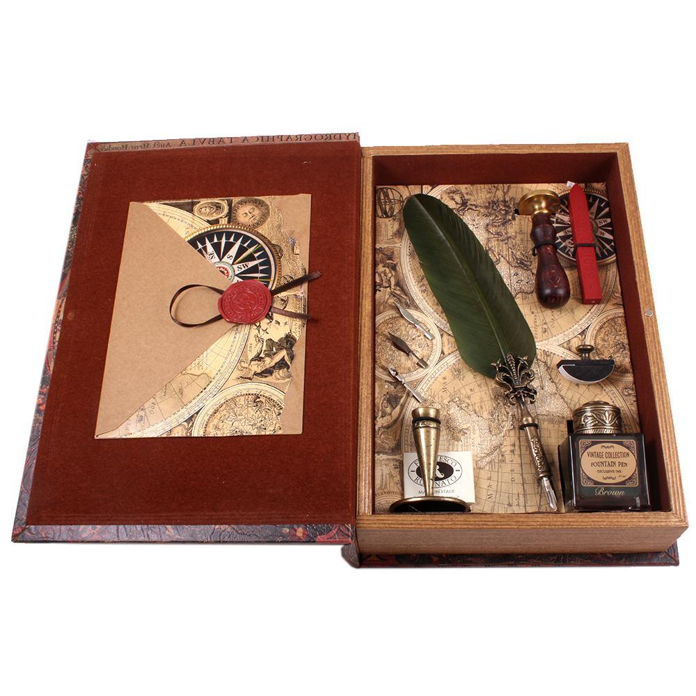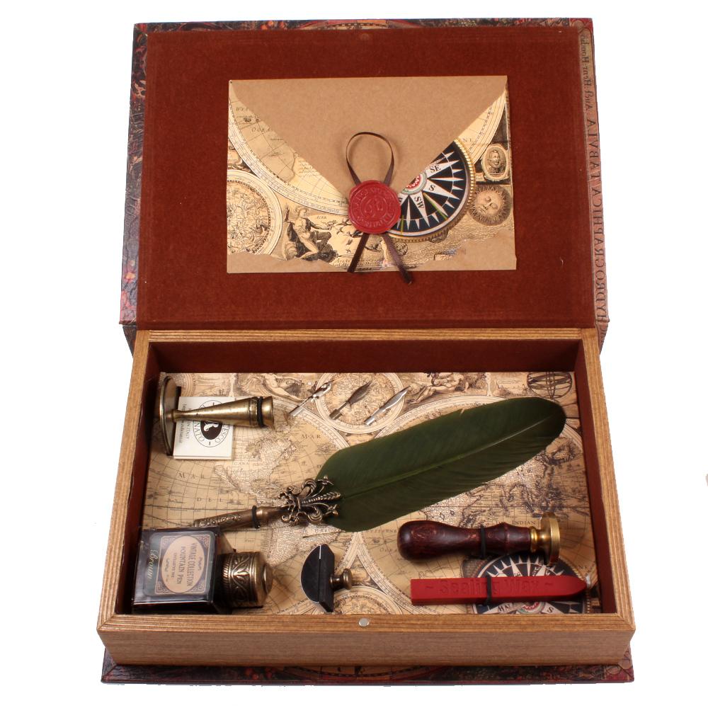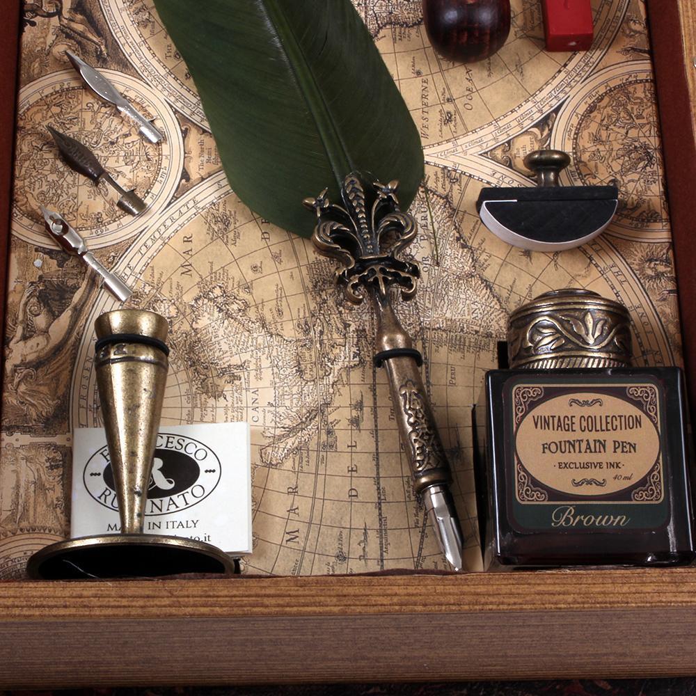 Ahşap gövde pirinç mühür,3 adet divit uç, mürekkep kurutucusu, tüylü divit kalem ve 40 ml mürekkep
