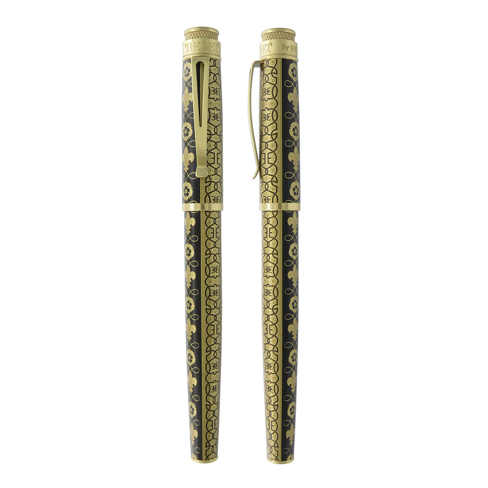 Bu dolma kalem, orijinal zanaatkârın dekoratif işçiliğini Kraliçe I. Elizabeth'in aile amblemi, Tudor gülü, Fransız zambak çiçeği (o zamanlar İngiliz silahlarının bir parçası) ve arka arkaya iki E (Elizabeth'in şifresi) ile kopyalıyor. Altın ve siyah tasarım, cilalı pirinç süslemeyle tamamlanan koruyucu mat kaplamalı pirinç gövde ve kapak üzerine basılmıştır. Bu güzel yazı aletiyle tarihten bir parça alın.