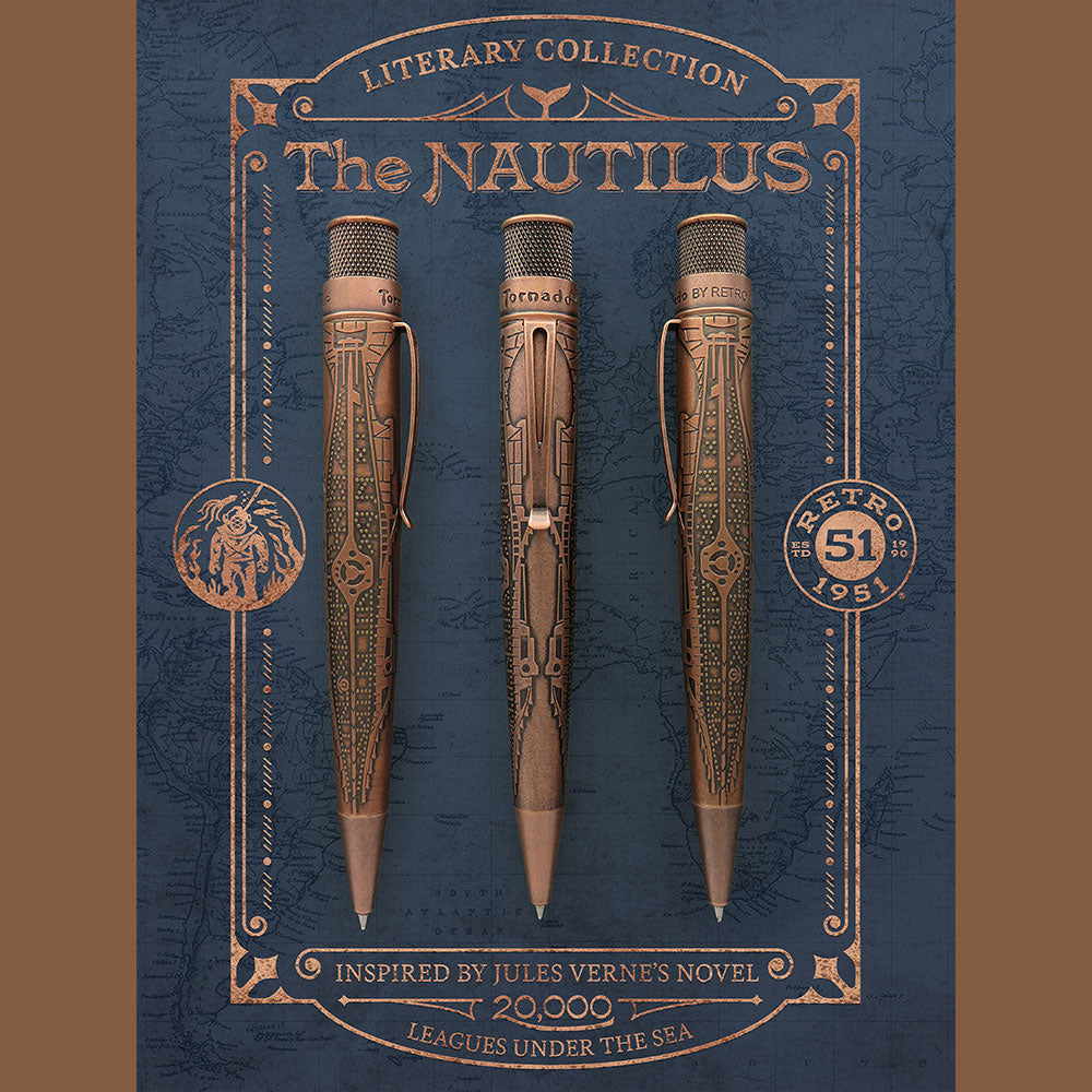 • Retro51'in Edebiyat Koleksiyonu'na eklenen en yeni üyesi The Nautilus ile keşfedilmemiş derinliklere yolculuk. Jules Verne'in ölümsüz başyapıtı Denizler Altında 20.000 Fersah'taki efsanevi Nautilus denizaltısından esinlenilerek ayrıntılı bir şekilde tasarlanan bu yeni Big Shot Tornado™ Rollerball ile denizin gizemi sizi bekliyor. Kaptan Nemo'nun sözleriyle, "Okyanus, insanın asla yalnız kalamadığı uçsuz bucaksız bir çöldür, çünkü etrafındaki hayatın telaşını hissedebilir."