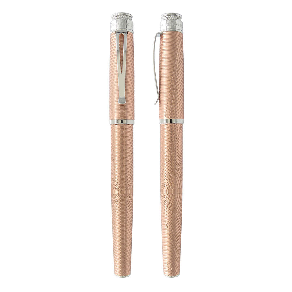 • Fütürist, mucit, elektrik ve makine mühendisi - Nikola Tesla, zamanının çok ötesinde bir dahiydi. Buluşları bugün hala kullanılıyor ve teorileri o kadar ileri düzeydeydi ki üzerinde çalışılmaya, denenmeye ve hatta modern dünyaya güç vermeye devam ediyor. Bu kalem tasarımı, Tesla'nın kablosuz güç deneylerinde kullandığı spiral bobinden esinlenmiştir. Eşmerkezli daireler hazneye asitle işlenir, ardından bakırla kaplanır ve ona ışıltılı ve manyetik bir estetik kazandıran platin atamalarla tamamlanır. Özel kalemlik görevi gören bir Nikola Tesla'nın resminin olduğu ambalaj tüpünde sergilenmektedir.