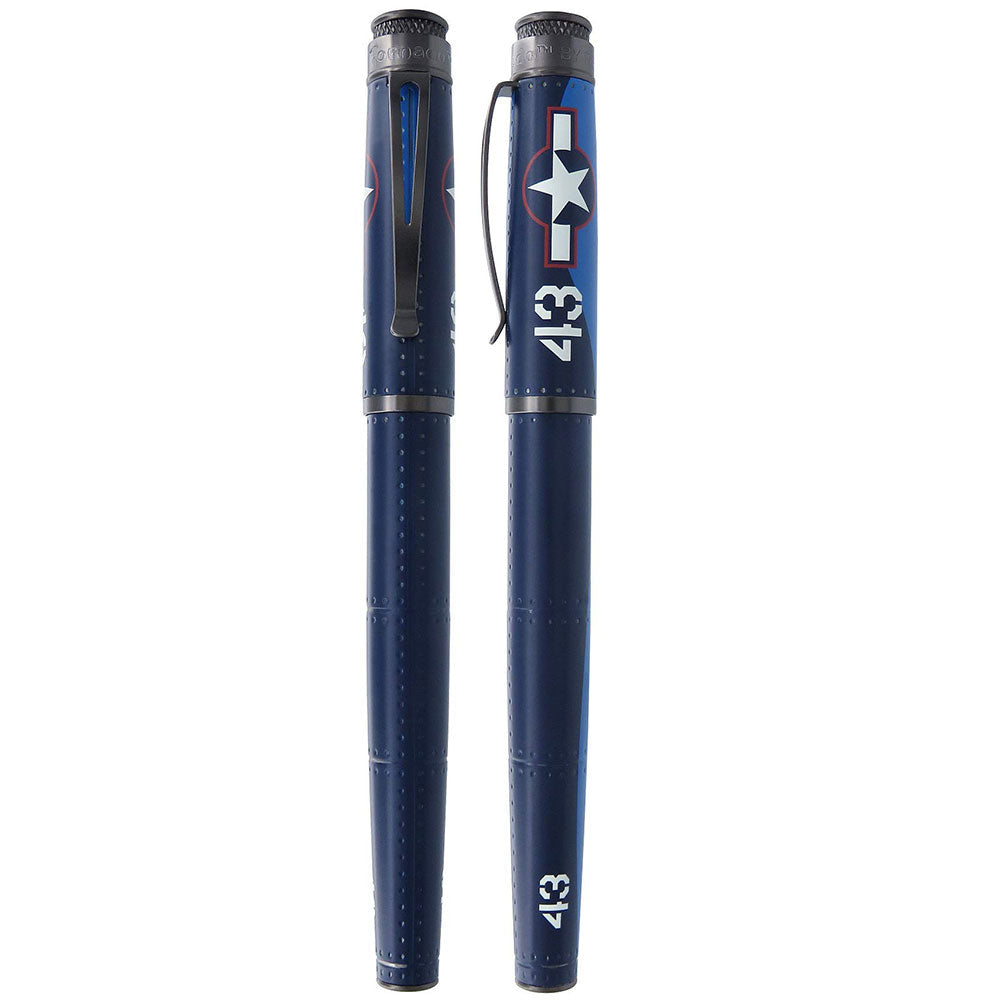 İlk olarak 1942'de tanıtılan Corsair, 2. Dünya Savaşı Amerikan savaş uçağıdır. Retro 51, "Corsair" tasarımı Tornado roller kalem ile uçağı kalem formunda ölümsüzleştiriyor. Uçağın estetiğini yeniden yaratmak için grafiklerle basılmıştır.Kalemin gövdesi asitle eskitme baskı tekniğiyle yapılmıştır, kalemin klipsi ise eskitme gümüş süslemeye sahiptir.