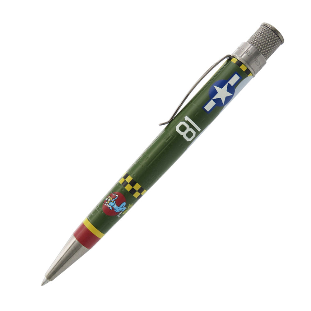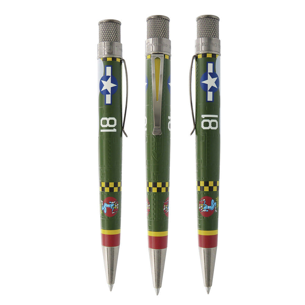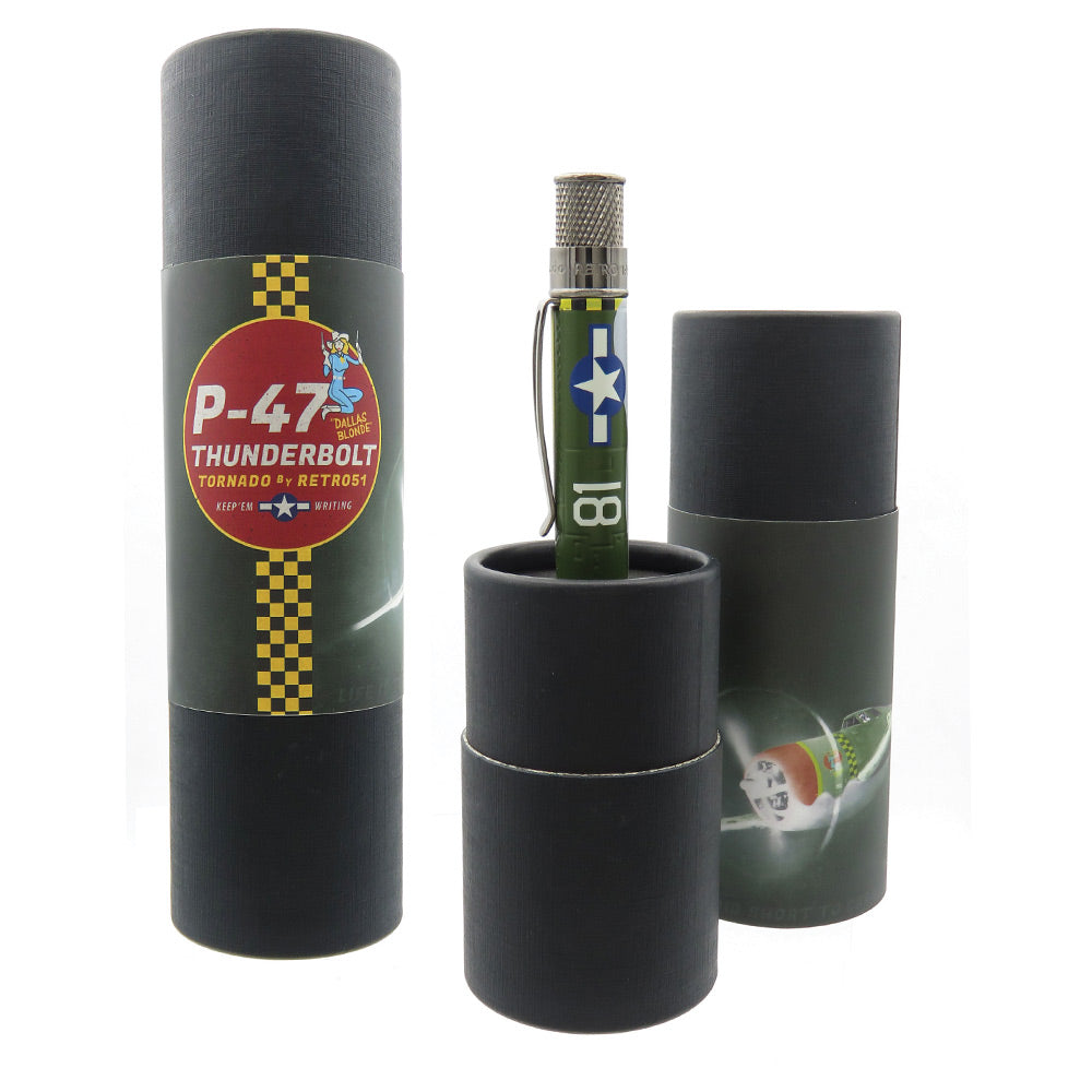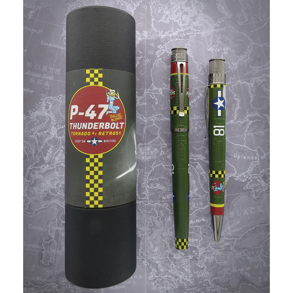 • P-47 Thunderbolt kalemi, üretilen 15.000'den fazla birim ile 2. Dünya Savaşı'nın en popüler ABD savaş uçağından sonra tasarlanmıştır. Havadan havaya taarruz muharebesinde başarılı bir şekilde görev yapan ağır topları ve becerikli kara saldırısıyla biliniyordu. Sağlam yapısı, savaş hasarına dayanmasına ve yine de uçuşa elverişli kalmasına izin verdi. Tornado, asitle oyulmuş perçinleri ve gövde üzerindeki panelleri ile P-47'yi taklit eder ve çarpıcı kırmızı, sarı ve yeşil renklerle boyanır. 352nd Fighter Group'un "Dallas Blonde" lakaplı P-47'sinin burun sanatıyla süslenmiştir ve antika gümüş süslemeler ve uyumlu damalı kaplama ile tamamlanmıştır.