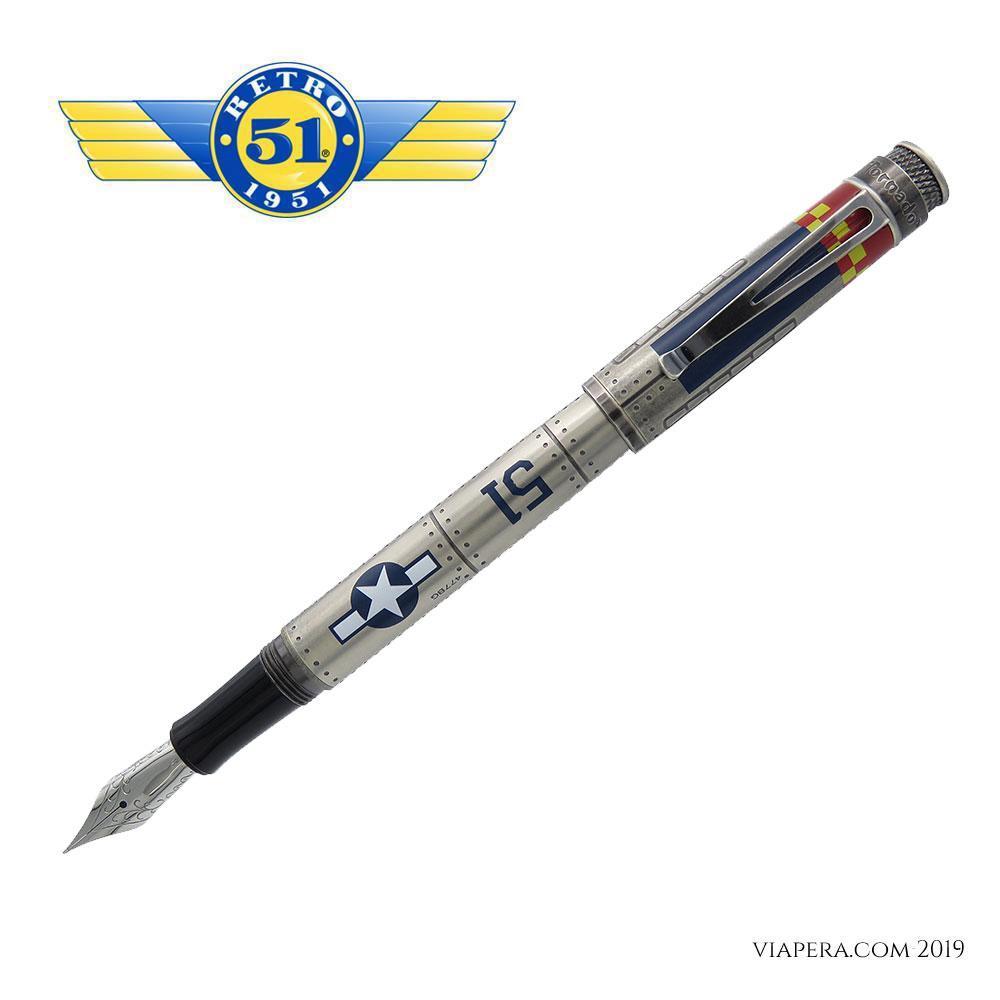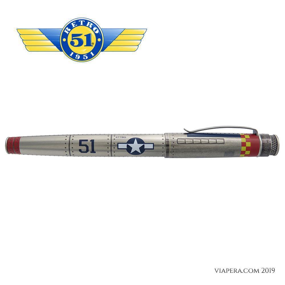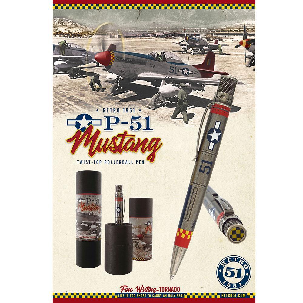P-51 Mustang uçağı, neredeyse herkes tarafından II.Dünya Savaşı'nın en başarılı piston motorlu savaş uçağı kabul edilmektedir. Savaş esnasında en fazla üretilen uçak modellerinden biridir. Fransa'nın düşüşünden sonra Avrupa'ya giden ilk Amerikan savaş uçağı olmuştur. Hem hızlı manevra yeteneği hem de kısa mesafede havalanabilen bir avcı uçağı modelidir. Kalemin gövdesi asitle eskitme baskı tekniğiyle yapılmıştır, kalemin klipsi ise eskitme gümüş süslemeye sahiptir.