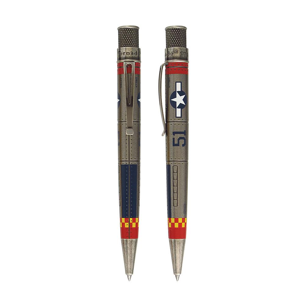 • P-51 Mustang uçağı, neredeyse herkes tarafından II.Dünya Savaşı'nın en başarılı piston motorlu savaş uçağı kabul edilmektedir.  Savaş esnasında en fazla üretilen uçak modellerinden biridir. Fransa'nın düşüşünden sonra Avrupa'ya giden ilk Amerikan savaş uçağı olmuştur. Hem hızlı manevra yeteneği hem de kısa mesafede havalanabilen bir avcı uçağı modelidir. Kalemin gövdesi asitle eskitme baskı tekniğiyle yapılmıştır, kalemin klipsi ise eskitme gümüş süslemeye sahiptir.