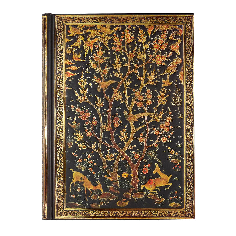 - Bu zarif derginin kapak tasarımı, altın ve inci tozu ile lake boyamanın yer aldığı mistik Fars şiirinin 16. yüzyıl ciltlemesini yeniden üretilmiş halidir.