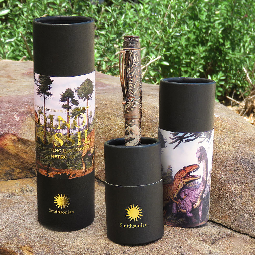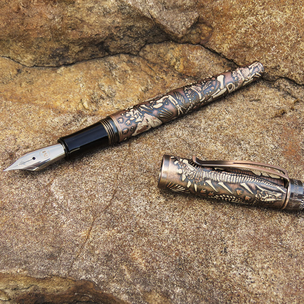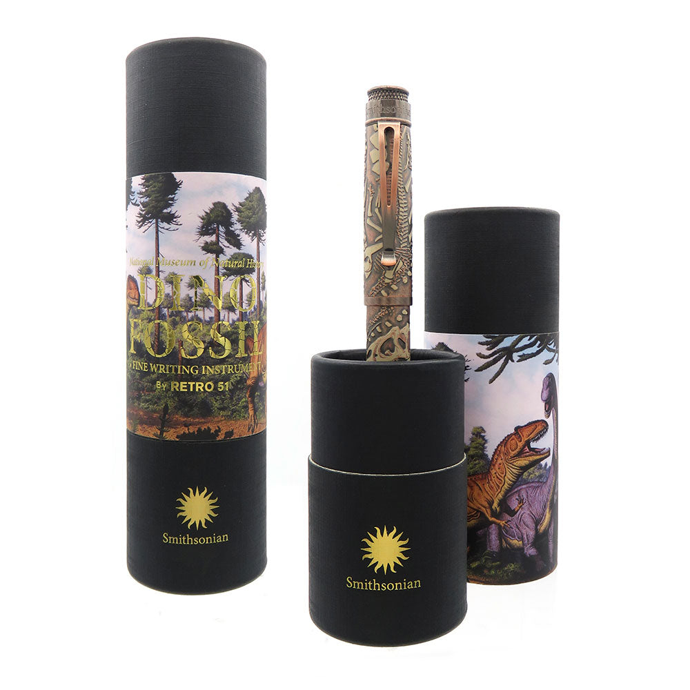 • Dinozorları seven tanıdığınız birinin bu resmi lisanslı Smithsonian dolma kalemini açacağını düşünün. Hatıra tüpünün içinde, kemikleri gerçekten hissedebileceğiniz metal bir kalem keşfedecekler. Topraktan çıkarılmamış bir görünüm vermek için taşlanmış bakırla kaplandı ve son olarak kalem gövdesinin etrafını saran birkaç dinozoru vurgulamak için üstüne fildişi baskısı yapıldı. üst diskte. Bu kalem kesinlikle sizi kükretecek!