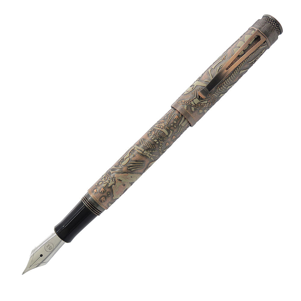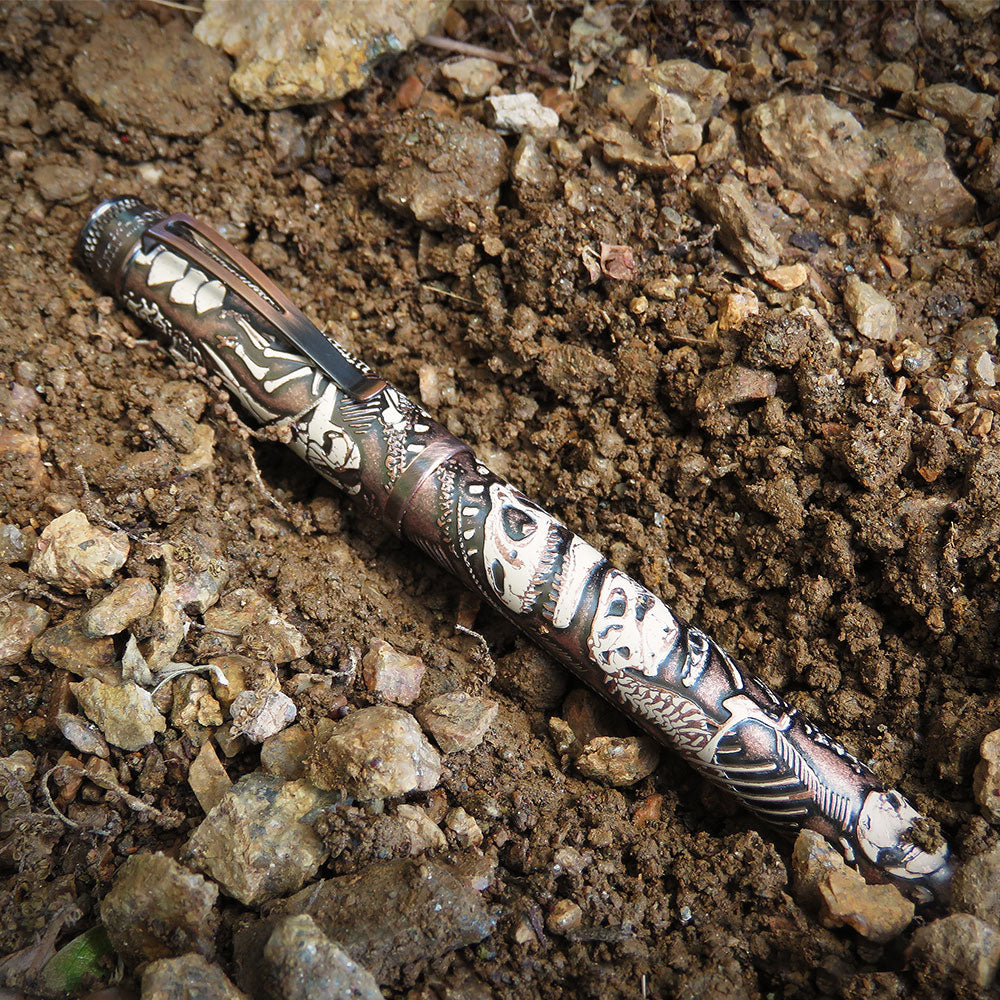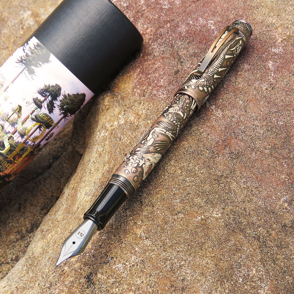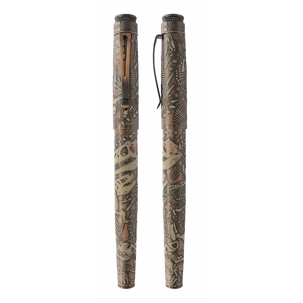 • Dinozorları seven tanıdığınız birinin bu resmi lisanslı Smithsonian dolma kalemini açacağını düşünün. Hatıra tüpünün içinde, kemikleri gerçekten hissedebileceğiniz metal bir kalem keşfedecekler. Topraktan çıkarılmamış bir görünüm vermek için taşlanmış bakırla kaplandı ve son olarak kalem gövdesinin etrafını saran birkaç dinozoru vurgulamak için üstüne fildişi baskısı yapıldı. üst diskte. Bu kalem kesinlikle sizi kükretecek!