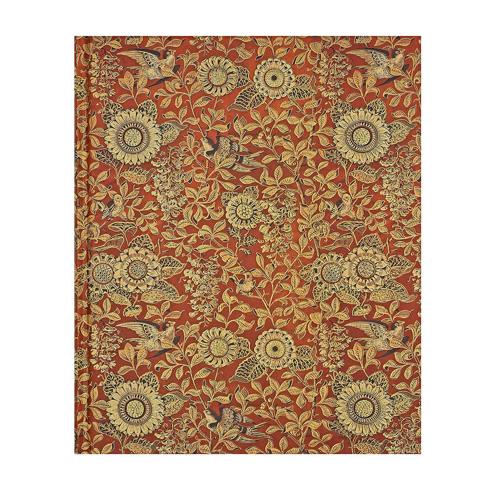 - Bu görkemli defterin kapağı, 19. yüzyılın sonlarında Londra, Spitalfields'ın dünyaca ünlü dokumacıları tarafından yaratılan karmaşık bir altın ipek perdenin replikasından esinlenilmiştir. Orijinali ise artık Victoria ve Albert Müzesi koleksiyonunun bir parçası olarak sergilenmektedir..