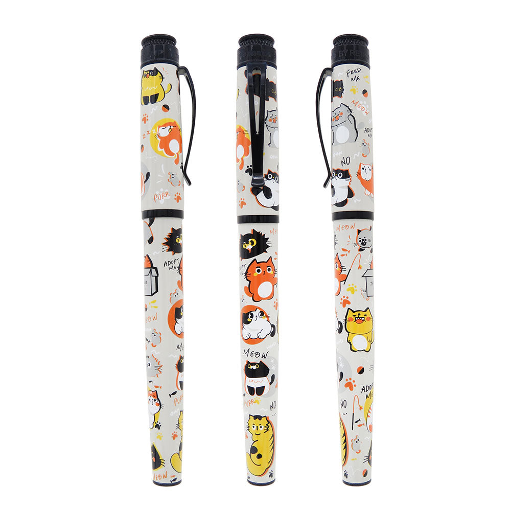 • Bu Tornado™ Dolma Kalem, gövdesinin her bir bölümünde kedi çekiciliğinin keyifli bir ifadesine dönüştüğü karşı konulamaz derecede sevimli kedi illüstrasyonlarını sergiliyor. Her yazı gereci oyuncu kedilerle serigrafiyle kaplandı, ardından parlak şeffaf bir kaplamayla kaplandı ve Gizli Siyah vurgularla tamamlandı. Kedilerin aynı eğlenceli ve sevimli ruhunun günlük yazma deneyiminize aşılandığını göreceksiniz.
