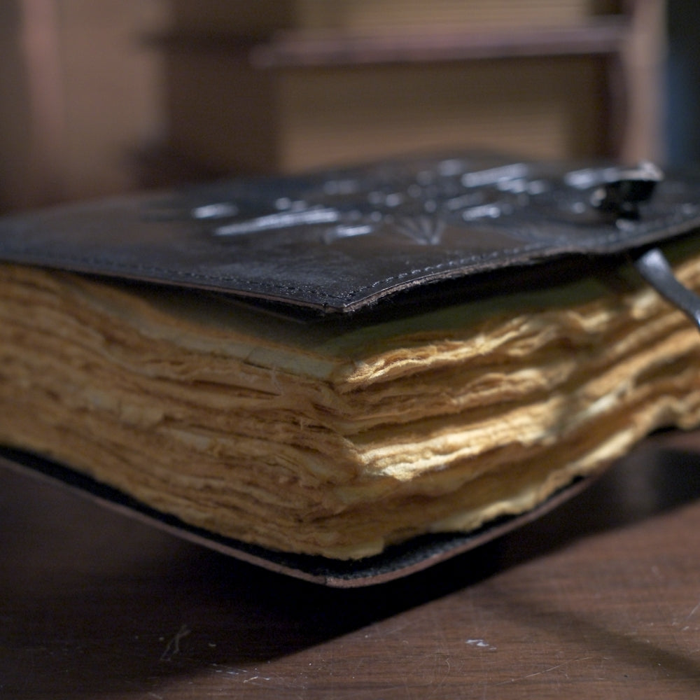 El yapımı deri defter serisi, %100 pamuklu el yapımı kağıt mevcuttur. Özellikle kurşun kalem ve eskiz kalem için idealdir. Dolmakalem ve roller kalem için tavsiye edilmez.